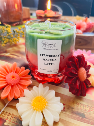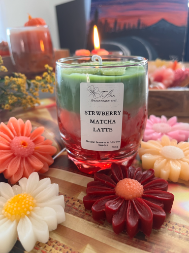 Blends the fresshness of ripe beeries with the soothing richness of green tea with juicy strawberry and a hint of wild raspberry, earthy matca green tea and frothy steamed milk created a creamy , comforting layer that softens the fruitness. Rrefreshing and cozy like sipping a strawberry topped latte on a sunny afternoon.